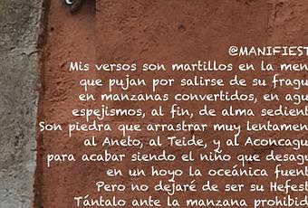 Pero no dejaré de ser su Hefesto, Tántalo ante la manzana prohibida, Sísifo a empujarlos siempre dispuesto, Agustín que del hoyo haga medida; porque al cabo los sé mi manifiesto
