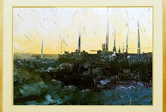 " Dead ships and a sailboat " " Navíos muertos y un velero "óleo espátula lienzo. sep.2017.28 x 22.5 cm.detalles.