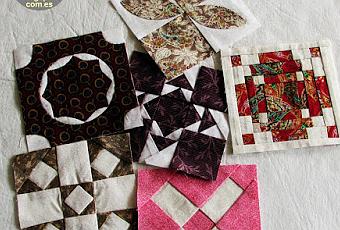 F04 Old WindmillEste bloque no le hice en su momento porque me había dicho Bea que tenía una tela rosa muy bonita y quise hacerla con ella. Mereció la pena esperar. Muchas gracias Bea, la tela no puede ser más bonita.Y el bloque la luce bien.F06 Deanie's DaisiesEste bloque, querida Juana se me atravesó en su momento. En la parte central lleva cuatro "mini" melones que me quedaron fatal.Así que he decidido tunearlo. le he puesto en el centro un cuadrado y tan pancha.Prometo que si algún día me especializo los aplico y punto.E08 Mama's MazeEsta tela me parece divina, la compré en Amsterdam y fue amor a primera vista.Era un fat quarter que tenía reservado entre las telas especiales y me pareció que un bloque del DJ era una ocasión bien especial.E10 Five & Dime