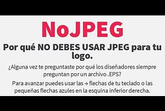 En la web nojpeg.org muestran una presentación, disponible en varios idiomas, que pretende ayudar a entender el motivo por el que los formatos EPS y PNG son tan importantes a la hora de crear un logo. Usar jpg (jpeg) genera problemas de varios tipos (fondo no transparente y pérdida de resolución, principalmente), problemas que pueden ser evitados si guardamos una copia de nuestro logo en formato EPS (para que el diseñador pueda realizar trabajos con el logo usando herramientas especializadas) y formato PNG (para que podamos usarlo en la web garantizando que el fondo no quedará oculto por un terrible cuadrado blanco).