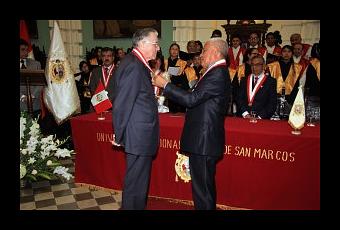 Al acto protocolar, realizado en la Sala Capitular del Convento de Santo Domingo, asistieron las más altas autoridades de la UNMSM además de una comitiva de la USMP liderada por el rector de dicha casa de estudios, Ingeniero José Antonio Chang Escobedo.