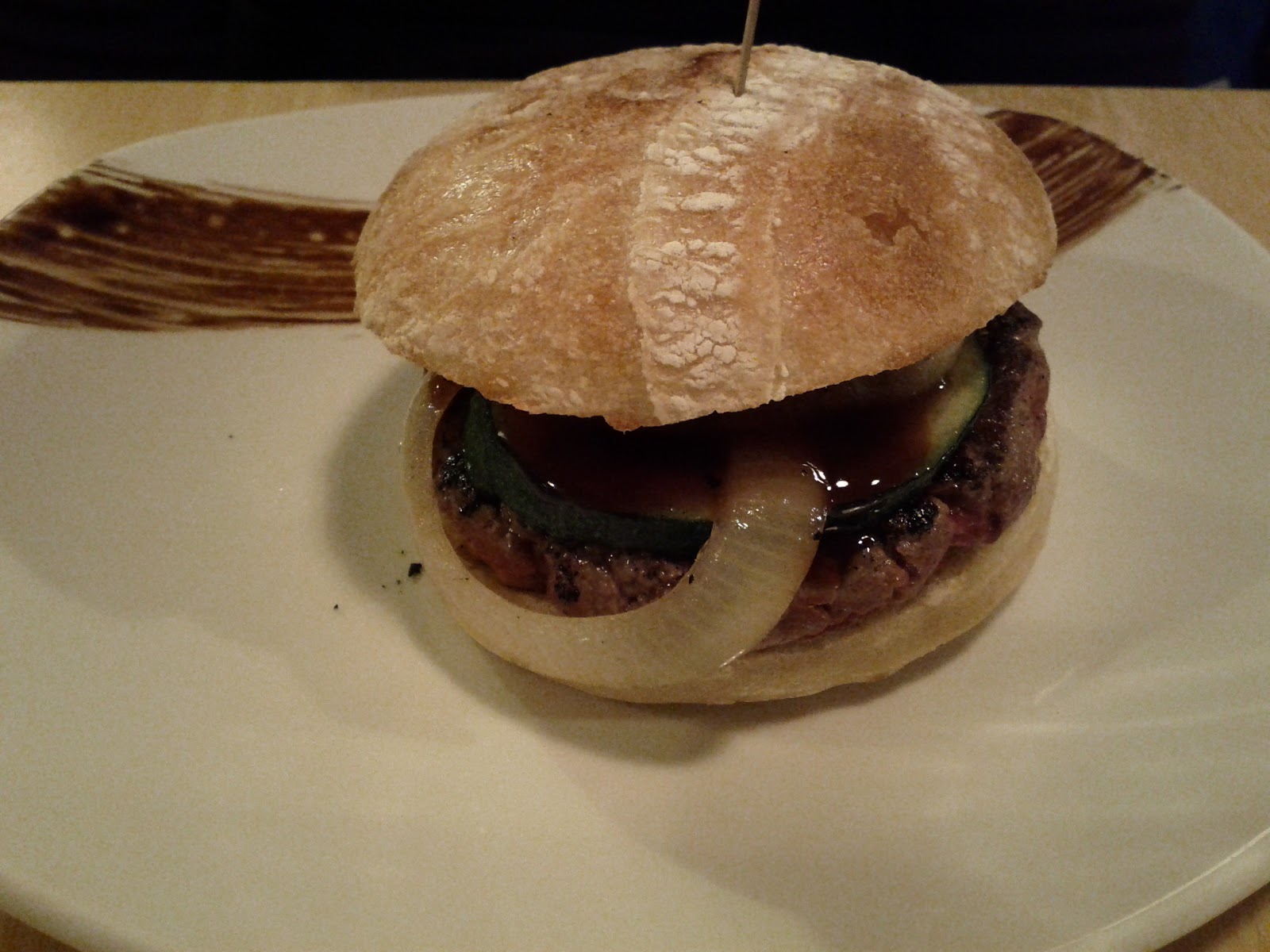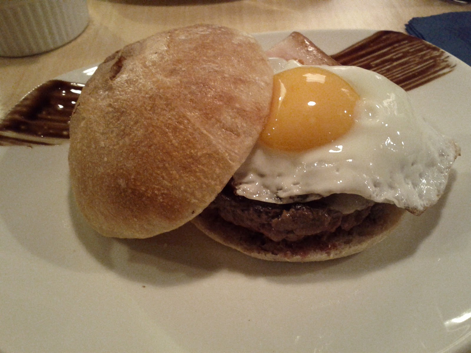 Dicho todo esto, pasamos a la hamburguesa en sí. En este caso pedimos una hamburguesa con huevo, queso y bacon, que, sinceramente, nos agradó bastante. La carne al punto (aunque te preguntan cómo la quieres), estaba bien cocinada y era de un tamaño adecuado a su "talla", aunque quizás echemos de menos el sabor a barbacoa del que tanto hablamos, ya que, presumiblemente, sólo dispongan de plancha en la cocina, una pena. La gran sorpresa la aportó el pan, siendo de tipo chapata, muy crujiente y consistente, con un único fallo: al ser tan crujiente, se lleva mal con el huevo frito y provoca que se te resbale todo y se desparrame por el plato, pero bueno, estas cosas pasan en los mejores sitios, pero lo que no es un fallo reseñable.