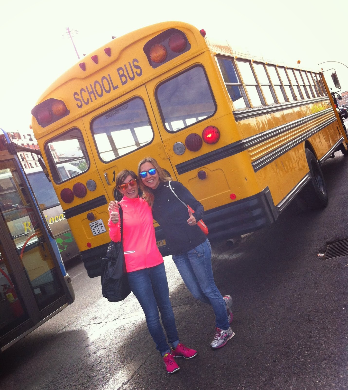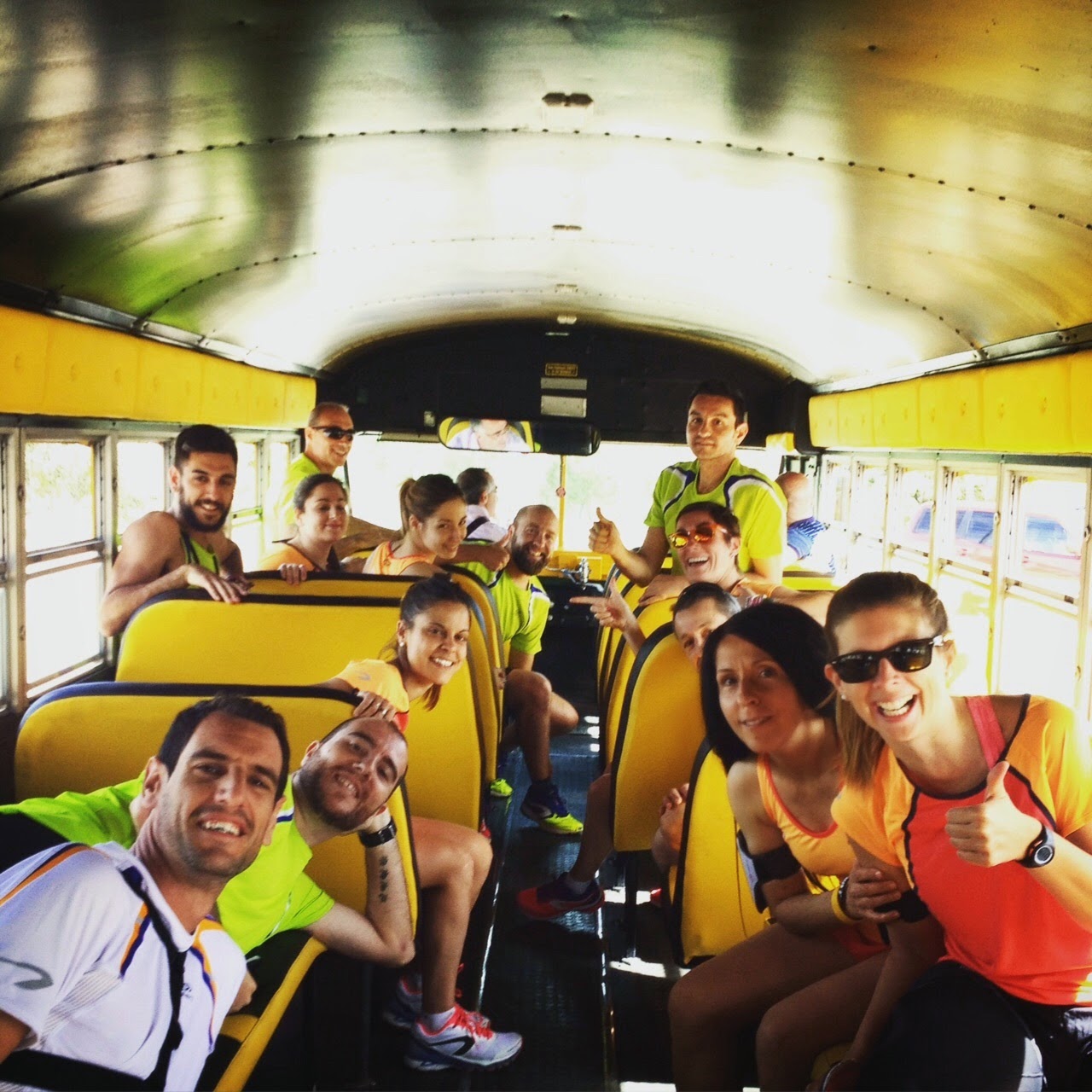 A las 9,20 estábamos en Atocha esperando a que viniesen a recogernos para llevarnos hasta Torrelodones donde tendría lugar el evento. Al llegar al punto de encuentro había muchas caras conocidas del mundo Blog…. Conso, Samy, Eva, Alberto… Qué alegría verlos! También conocí a muchas otras personas enamoradas del Running en todas sus facetas. En seguida llegó nuestro Transporte ;-) no me lo podía creer… ¡Un autobús de escuela que antiguamente utilizaban en Estados Unidos!