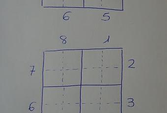Empezamos por unir los cuadros que sean hasta formar dos cuadros grandes, da igual el número de telas que uséis y la manera de unirlos, lo importante es que el resultado sean dos cuadrados iguales. Ahora toca unir uno al otro que lo haremos de la siguiente manera, uniendo los vértices de uno con el centro de cada lado del otro. Os he hecho este dibujito para que quedase más claro, cada número tiene que ir consigo mismo.