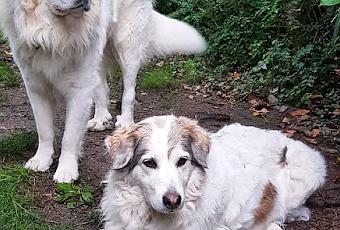 Eran los perros de todos. Mi madre decía que eran suyos porque la casa es suya, pero eran de todos nosotros. A cada uno nos hacían compañía de una manera diferente y aunque jugábamos a «¿De qué equipo eres? ¿Eres team Tuca o team Turbón?», éramos de los dos. Estaban siempre con nosotros para que los acariciáramos sin fin, nunca se cansaban de los mimos. No eran sutiles ni delicados pidiendo mimos: te metían la cabeza bajo el brazo mientras leías en el jardín o te daban con su pataza para que, en el supuesto de que no los hubieras visto echándote el aliento, te percataras de que estaban ahí y querían sus mimos. Por Borja sentían devoción y él por ellos.