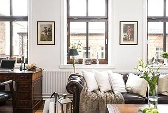 Sigue una línea clásica, pero sin estar recargado. Un piso muy luminoso, aunque claro, ayuda mucho el hecho de no tener cortinas. Las ventanas muy bonitas, pero yo no me veo sin cortinas en casa. Quizás los nórdicos no, pero aquí somos muy cotillas, y eso de tener a la señora Paquita mirándome todo el día para comentar mis quehaceres con la señora Vicenta, como que no me convence. ;D
