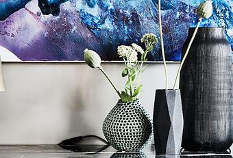 Colores fríos y relajantes que ponen una elegante nota de contraste sobre el gris de las paredes...