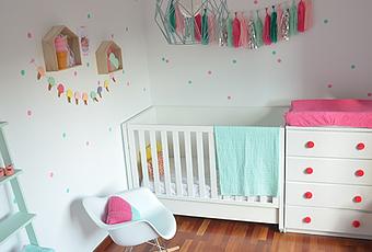 Enamorarte de una foto de instagram, así fue como conocí a Marina (@marinacabero) publicó una foto de la habitación de la pequeña Martina y junto a ella la etiqueta #bohodecoshop, en su día compró los vinilos de lunares mint y rosa y algunas de las casitas y este ha sido el resultado junto con muchísimas más cosas donde reinan los colores pastel y un gusto EXTRAORDINARIO para crear ambientes infantiles llenos de color!