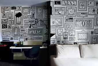El artista y diseñador Timothy Goodman ha transformado las paredes de una de las habitaciones del Hotel Ace de Nueva York. Con un rotulador negro y mucho arte ha rendido homenaje a la Big Apple dibujando 99 cuadros a mano con las clásicas atraciones turísticas de la ciudad, las palomas invasoras, las ratas... 99 Ilustraciones Frame Illustrations