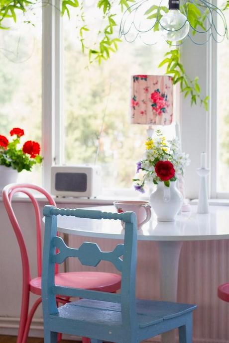 Una manera de dar un cambio realmente interesante y que se notará a primera vista, es dar un toque de color en alguna pieza de mobiliario de nuestra casa: las sillas, una mesita auxiliar, incluso una ventana ó una puerta, en un tono llamativo que capte rápidamente nuestra atención.