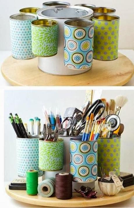 Unos botes de legumbres, de pintura, latas de té ó los botes de Campbell's con sus etiquetas, . . . son ideales para organizar y clasificar.