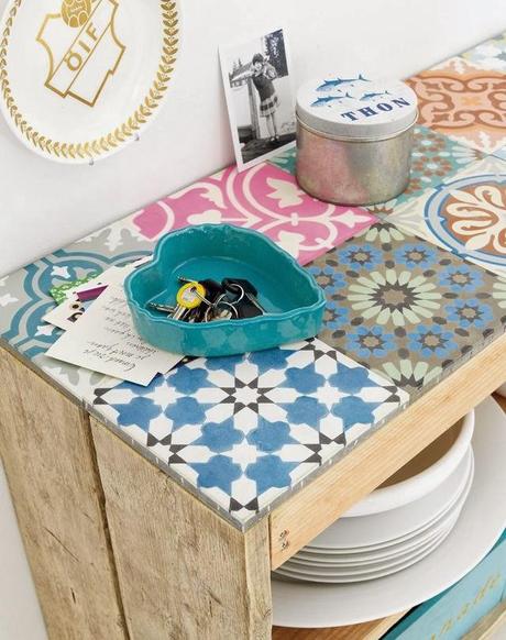 Y qué te parecen estas baldosas hidráulicas para transformar un mueble de madera reciclada?