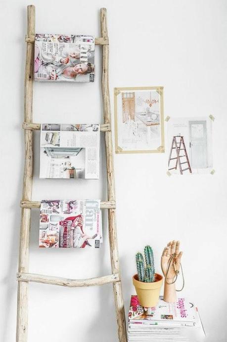 Una balda colgante para colocar tus plantas con estilo, una composición de cajas apiladas y colgadas en la pared como estantería, una caja de vinos y unas botellas como joyero, labores de punto, el crochet, unas ramas como perchero, son algunas de las atractivas propuestas. . .