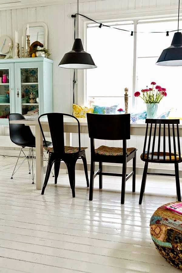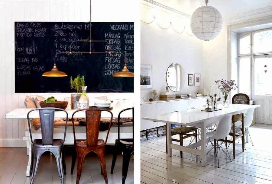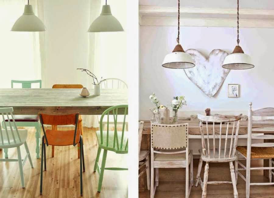 Podemos mezclar sillas de diferentes épocas, estilos, colores... y crear así un conjunto