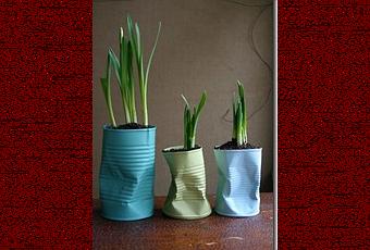 Estos botes para flores son de lo más fácil de hacer y de tan simple que es la idea me fascina. Simplemente cogemos unos botes de conserva, de los habituales en cocina, con un martillo los abollamos un poco, les damos un poco de color y voila. Tenemos unos botes para flores o unas pequeñas macetas de lo mas atractivo, y como comenta su creadora, parecen de papel.