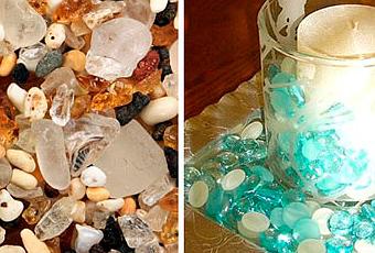 Entre la arena de la playa hay un sinfín de cristalitos retrabajados por las olas, de bellos colores verdes, marrones, blancos y incluso azules. Pues bien, recojamos aquellos que más tamaño tengan y llevémoslos a casa. Los limpiaremos con agua dulce, del grifo, removiendo para desprendan bien la sal que puedan llevar adherida y que les resta luminosidad.
