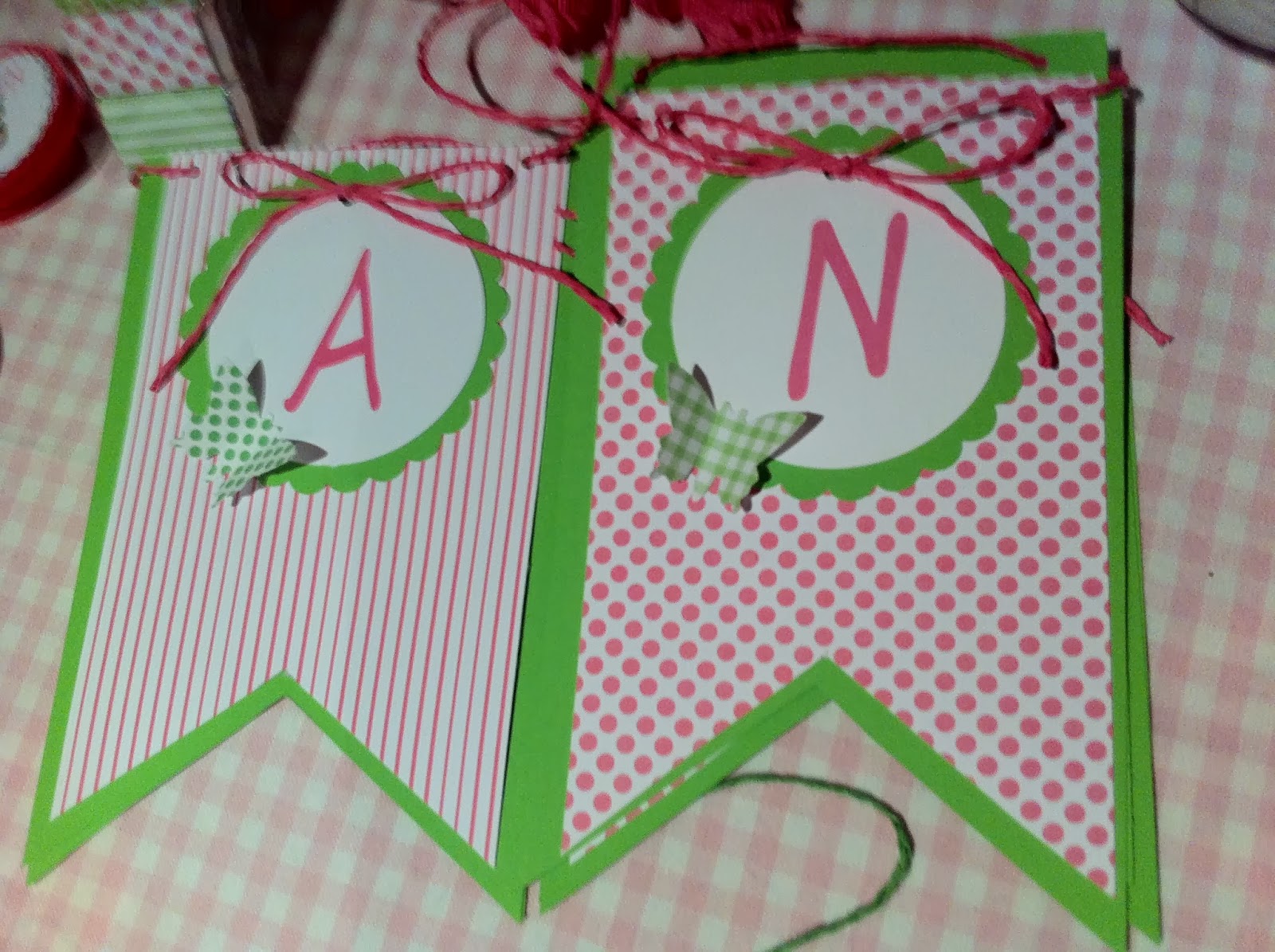 Os dejamos las fotos de la guirnalda personalizada que hemos para decorar la comunión de NoeliaDecoracion Comunión En tonos fucsia y verde manzanaDecoracion Comunión