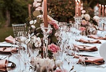 Consejo de presupuesto: Si el presupuesto es ajustado, prioriza los elementos principales, como las velas y algunos arreglos florales grandes en vez de muchos pequeños. Puedes alquilar mantelería y candelabros, lo que reduce los costos.