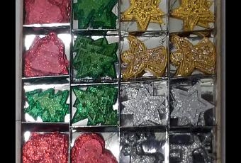 Comprado en Zara Home, son estrellas, arboles, corazones, angelitos, renos y campanas pintadas a mano para colgar en el árbol.