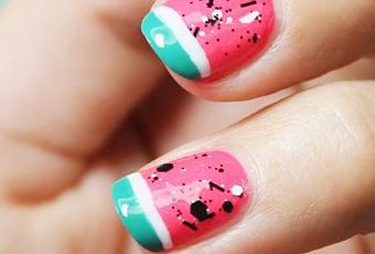 Las uñas de sandía son una de mis decoraciones favoritas y una de las primeras que puse en el blog. Podéis encontrar un tutorial en mi libro de nail art. Lo sencillo de estas uñas es que si sabes hacer la manicura francesa lo tienes todo hecho. Con líneas de dos colores (blanco y verde) y un rojo/rosa ya puedes ponerte manos a la obra. Yo creo que es una de las decoraciones de uñas más fáciles por las que empezar.