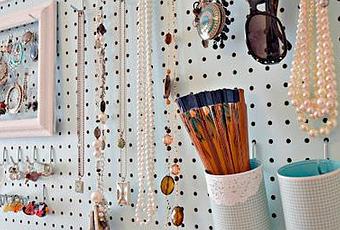 He encontrado algunas ideas muy interesantes y originales. Joyeros a la vista, escondidos en espejos, guitarras o cuadros, detrás de una puerta, en la pared... organizados con perchas, cajas de cristal, ramas, hueveras o moldes de mini muffins.