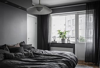La decoración es estricta en negros, grises y blancos en toda la casa, solo hay un par de contrastes en marrón oscuro en algún textil y el sillón de cuero del salón. Las zonas de día tienen algo más de blanco y son más claras y la de noche, el dormitorio, es muy oscura invitando al descanso.