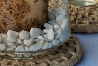 La mesa de navidad estuvo vestida con un mantel blanco que no es más que un retazo de panamá que encontré entre los saldos de La Casa de las Telas en mi última visita. Por qué razón sufrir con cada manito sucia si podemos disfrutar de la cena sin pensar en cuál será el mejor quita-manchas para el vino tinto o el aceite con especias. Desafiando los designios de la sangre usé el mantel sin cubrirlo con plástico, que me traerá nostalgias de la infancia y conmovedores recuerdos de las navidades pasadas pero carece totalmente de glamour, seamos honestas. Además usé una serie de posa-platos de fibra rústicos y porta-velas de vidrio que funcionaron como floreros improvisados. Este es el momento en el que, tal vez, estás pensando que la ambientación estaba fríamente calculada más allá de su aparente simplicidad...Y es el momento en el que te decepciono: los porta-velas se transformaron en floreros sui generis porque me olvidé de las velas en casa. Así es... muy navideña pero con las mismas mañas. La memoria nunca fue una de mis fortalezas y organizar perfectas cajas para perfectos viajes familiares será un objetivo para el año próximo. Las flores blancas que se lucen en las imágenes son tan silvestres como parecen: crecen por cientos en los terrenos que circundan mi rancho. Lo único que hice fue salir con una tijera y volver cargada de flores.