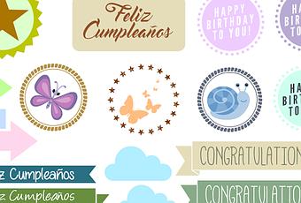 Hoy simplemente quiero compartir algo con vosotros. Se trata de un archivo descargable, gratuito con decoraciones y frases de cumpleaños. Ideal para decorar tarjetas, regalos y álbumes.