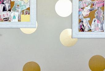 Cortar el papel en círculos, elegir donde los quieres poner y ya tenemos esta fantástica pared.(tutorial)