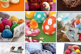 1.Huevos de Pascua decorados con tu inicial vistos en JuneberryLane 2. Huevos de pascua decorados con pegatinas de colores vistos en BetterHomesandGardens 3.Huevos decorados en forma de pollito de MartaStewart 4.Huevera rellena de huevos de crochet vista en WebMonsterHelene 5.Huevos de papel maché rellenos de caramelos de HipHipHooray 6.Huevos decorados con decoupage vistos en BrownPaperPackages 7.Jabones con forma de huevo de MagicCabin 8.Huevos pintados con garabatos vistos en AlisaBurke 9.Huevos de crochet de Knitwhits