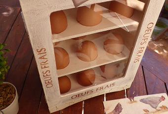 La he llenado de huevos recien puestos ayer por las gallinas de una de mis hermanas¡ Seguro que le encanta la huevera cuando la vea¡