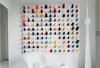 Se puede decorar con casi todo y si no os lo creeis mirad el uso que le han dado a unos carretes de hilo de coser. Fijáos en cómo el colorido de los hilos destaca sobre un ambiente totalmente blanco. ¿Os atreveríais a hacer algo similar?