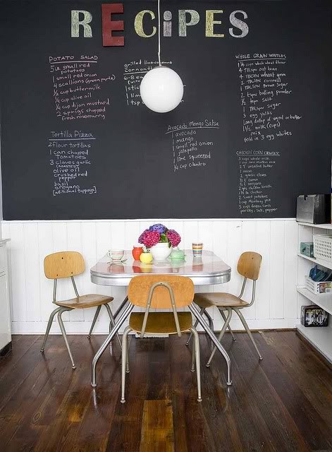 ...pero no hace falta que haya niños en casa para colocar una pizarra en mesas, puertas...en general, en cocinas (o donde nos apetezca)...