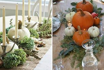 ¿Qué hay más otoñal que una buena calabaza?? Agasájala con unas flores secas y alguna velita y ya tienes un centro de mesa ideal.