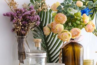 Flores frescas vs. artificiales: Decidí si preferis usar flores frescas, artificiales o una combinación de ambas. Las flores frescas aportan fragancia y una apariencia natural, pero requieren más cuidado. Las flores artificiales son duraderas y de bajo mantenimiento, ideales para decoraciones permanentes.
