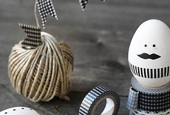 A aprovechando que la Semana Santa ya esta aquí de nuevo dentro de pocos días, os traigo esta idea para que adornéis vuestra mesa de Pascua. Muy sencillito, hecho con washi tape blanco y negro, unos huevos y papel de embalar. Una decoración muy fácil para sorprender a tus invitados.