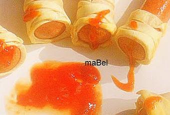 Vemos momias por todos lados hechas con salchichas ¿y le si cambiamos el look? Dedos de la momia ensangrentados!