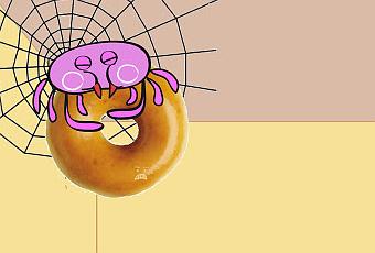 En otras ocasiones, también en casa, algún siniestro arácnido se pasea por la cocina, suele ser mas gordito que el anterior y cuando estoy a punto de merendarme un dónut de panadería… ¡chas! aparece, y pienso si no será que estaba al acecho de tan suculento manjar. Me imagino un dónut allá colgado del techo y una araña chupándose los pedipalpos. Me imagino no, voy a hacerlo, voy a colgar un dónut de su tela de araña a ver como reacciona. Haré una foto y la pondré al pie de este texto para que me creáis. Luego llamaré a los de National Geographic por si les interesa. Hasta pronto.