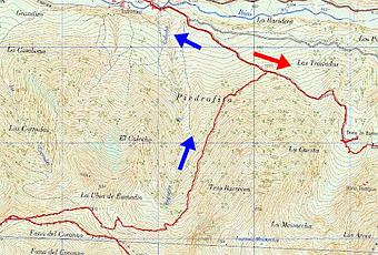 ... pero yo continuaré adelante por encima del Monte las Ḷḷeras y por debajo de El Tesu los Barruecos...