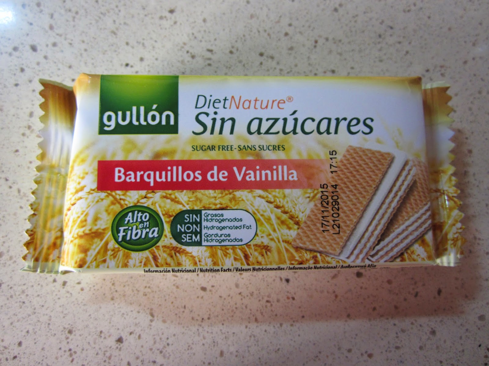 BARQUILLO DE VAINILLA GULLÓNSi no quieres añadir azúcar a tu dieta, cuídate con este delicioso barquillo relleno de crema de vainilla de la gama Diet Nature sin azucares de GULLON. Además, no tiene grasas hidrogenadas y su alto contenido en fibra lo convierten en una galleta ideal para todos los que buscamos una alimentación más saludable. Y en un práctico envase de 70g para que lo disfrutes en cualquier momento y lugar.Galletas de un sabor suave y muy crujientes, han durado un suspiro. Para un desayuno o una merienda para pecar sin remordimentos.