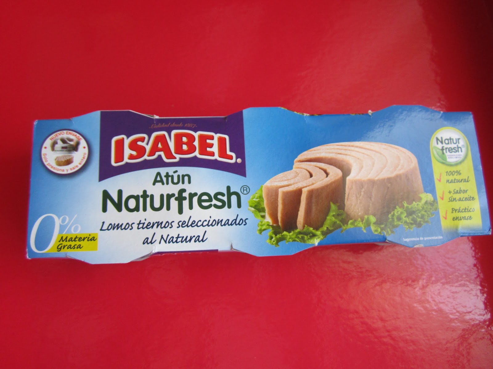 Atún Naturfresh 0% Materia Grasa de Isabel. Te ayuda a cuidar tu línea sin renunciar al delicioso sabor del atún al natural. Ofreciéndote un producto 0% materia grasa y 100% saborEs ver atún en lata y la calor que hace y ya se lo que voy a preparar, ensaladilla!!