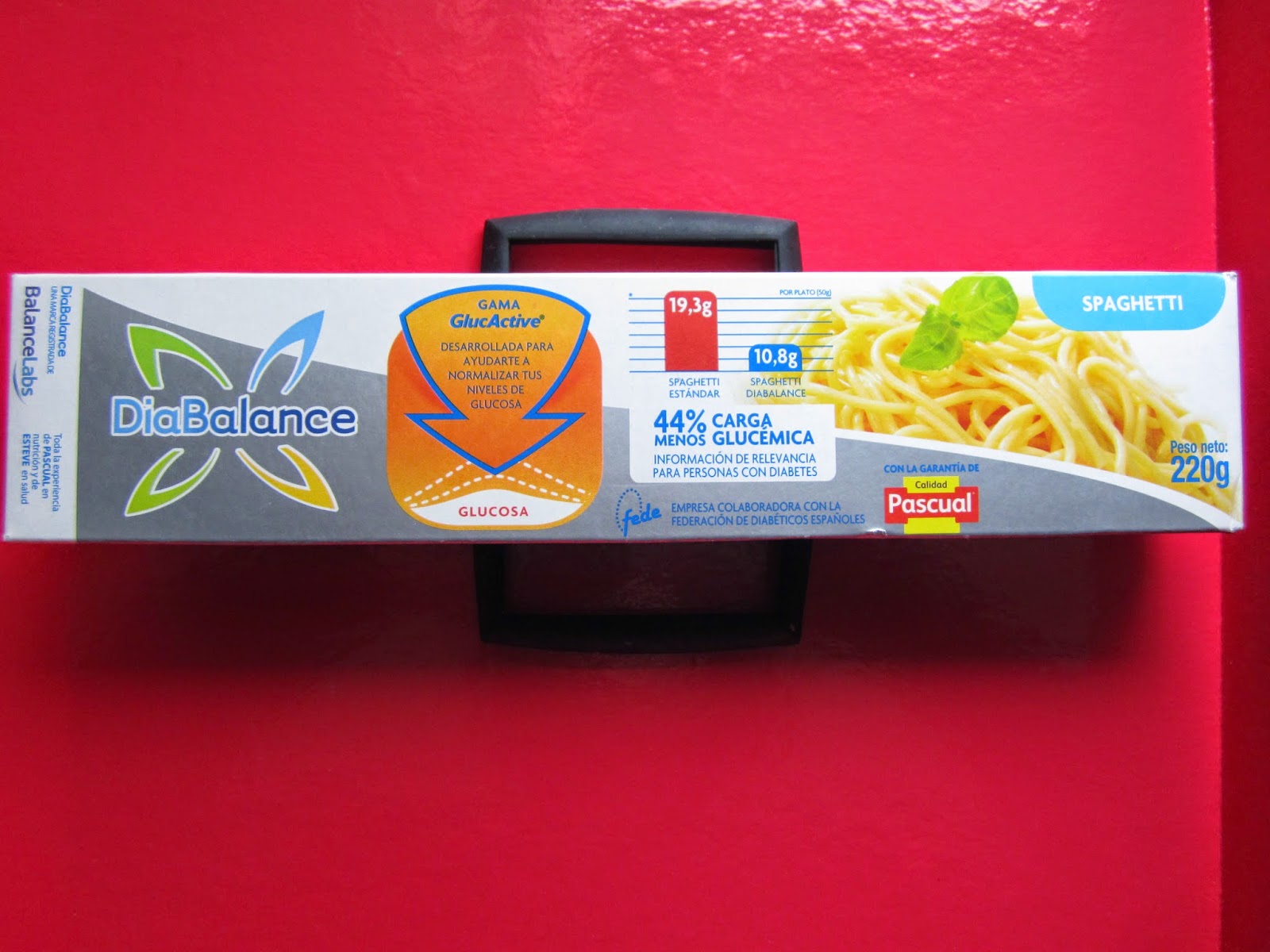 Pasta alimenticia de sémola de trigo duro con soja, gluten, almidón resistente y fibra dietética vegetal. Con un 44% menos de carga glucémica. Contenido reducido en hidratos de Carbono, alto contenido en fibra y en proteína.En este producto sin embargo no he notado diferencia, también es que al cocinarlo con verduritas y tomate pues el sabor ¨diferente¨ que pueda tener se disimula.