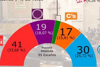 Podemos seguiría como tercera fuerza ampliando su representación al pasar del 14,8% de los votos al 18,1% y de 15 a 19 diputados. Sería tercera fuerza en todas las provincias excepto Almería y Granada, y en Cádiz y Sevilla estaría pisándole los talones al PP. Ciudadanos seguiría en cuarto lugar pero crecería en votos al pasar del 9,3% al 15,8%, siendo tercera fuerza en Almería y Granada, y disputándole la tercera plaza a Podemos en Cádiz, Córdoba, Jaén y Málaga. Los de Albert Rivera pasarían de los 9 escaños que tienen en la actualidad a 17. Por último Izquierda Unida perdería buena parte de sus apoyos al pasar del 6,9% de los votos al 4,3% y de 5 a 2 diputados. Con este escenario el PSOE podría seguir gobernando con el apoyo externo de Ciudadanos. La encuesta fue realizada durante el mes de febrero.