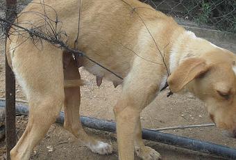 Llevo toda la mañana con este caso, la he desatado, curado, desparasitado y dado de comer, no tengo sitio donde tenerla, la he dejado en un chivetin que hay en este mismo terreno, con comida y agua y alli esta refugiada del frio, pero esta junto a esta gente que le han echo esto, "para proteger a sus gallinas", por no darle un tiro segun palabras de los vecinos.