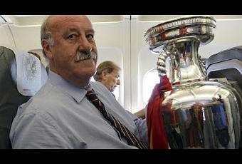 Del Bosque con Casillas, a la llegada a Madrid. Nueve años después de su salida del Real Madrid, Vicente del Bosque ha vuelto como principal impulsor de la selección española de Fútbol que acaba de ganarse la Eurocopa. Es el único entrenador que ha logrado proclamarse campeón europeo y mundial de clubs y de selecciones. Como técnico del Real Madrid conquistó dos ligas (2.001-2003), dos copas de Europa (2000-2002), un Intercontinental (2002), una Supercopa Europea (2002) y una Supercopa de España (2001). Y como seleccionador, conquistó un Mundial (2010) y una Eurocopa (2012). Es, igualmente, el seleccionador con mejor porcentaje de victorias: un 83 % (51 triunfos en 61 partidos).