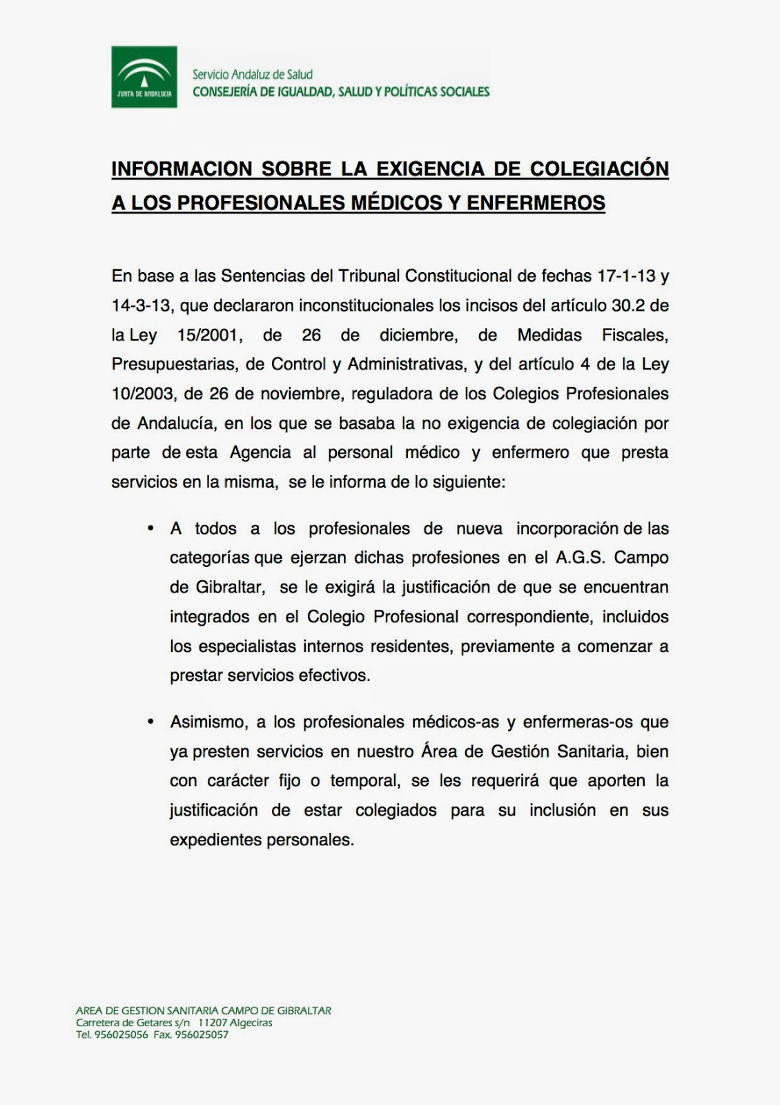 Debemos decir que en la reunión que mantuvimos intentó explicarnos los entresijos de lo que había llevado a nuestra empresa a rendirse, después de tantos años abanderando la no colegiación de sus empleados. Por riesgo de perder una reclamación patrimonial en los juzgados, dio lugar a exigir la colegiación a todos los enfermeros que hasta la fecha no lo estaban.