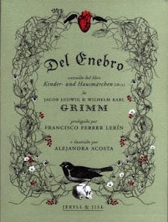 Fascinante y delicadísima edición del cuento "Del enebro" de los hermanos Grimm, a cargo de la editorial zaragozana Jekyll & Jill. Demostrando que los cuentos infantiles son en su mayoría terribles (aunque los censuren y retoquen), este cuento trata temas tales como el canibalismo, los doppelgänger, los celos, el rencor, la venganza, la violencia y el horror.
