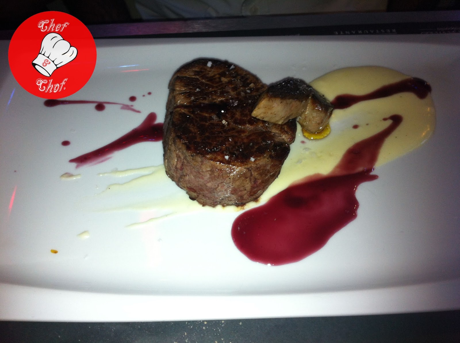 Los camareros de trato correcto y gran eficacia trajeron las bebidas y tomaron nota. Cuando nos vinimos a dar cuenta, ya estaban trayendo los primeros entrantes. Empezamos con un variado de croquetas, mitad de ibérico con parmesano, de gran cremosidad, mitad de chipirones en su tinta, de gran potencia. El segundo de los entrantes fue foie macerado. El foie lo sirven rallado formando una montaña, acompañado de una mermelada de violetas y unas escamas de sal en un plato cuadrado tan grande que minimiza la cantidad servida. En otro plato trajeron pan recién tostado donde mezclar la mermelada con el foie y sazonar al gusto. Lástima la cantidad de pan que era escasa y el precio que es excesivamente elevado.De principal pedí una hamburguesa Big Burguer de ternera de Kobe (según anunciaban) que me habían recomendado como algo excepcional. Mi opción B y C eran el Tataki de atún rojo, recomendado por la casa, y el Tikka Masala. A pesar del buen tamaño de la hamburguesa, creo que me equivoqué. Esperaba más de este plato que venía acompañado de unas patatas que sí que estaban deliciosas. Mis papilas gustativas demostraron una vez más que no disciernen entre Kobe, Angus, gallega u cualquier otra procedencia de la carne y menos si llevan pepinillos y kétchup que distorsionen el sabor. Con la hamburguesa cambié la cerveza por el vino, un Juan Gil de precio nada elevado.
