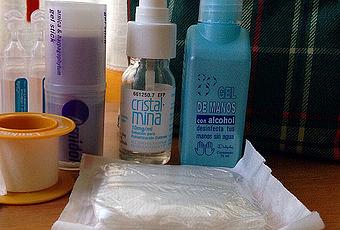 gel de manos desinfectante sin necesidad de agua, así puedo limpiar mis manos antes de tocarles y curarles la herida