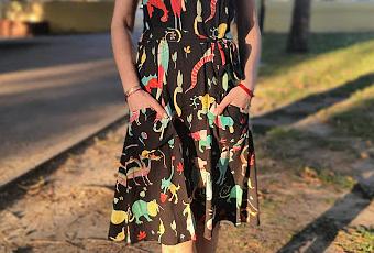 Este tipo de vestido delantal de La Casita de Wendy son los más frescos para pasar los peores días del verano. Muy muy frescos y cómodos y además son multitalla. Vestidos para siempre. Además el estampado e muy original y lleno de color.
